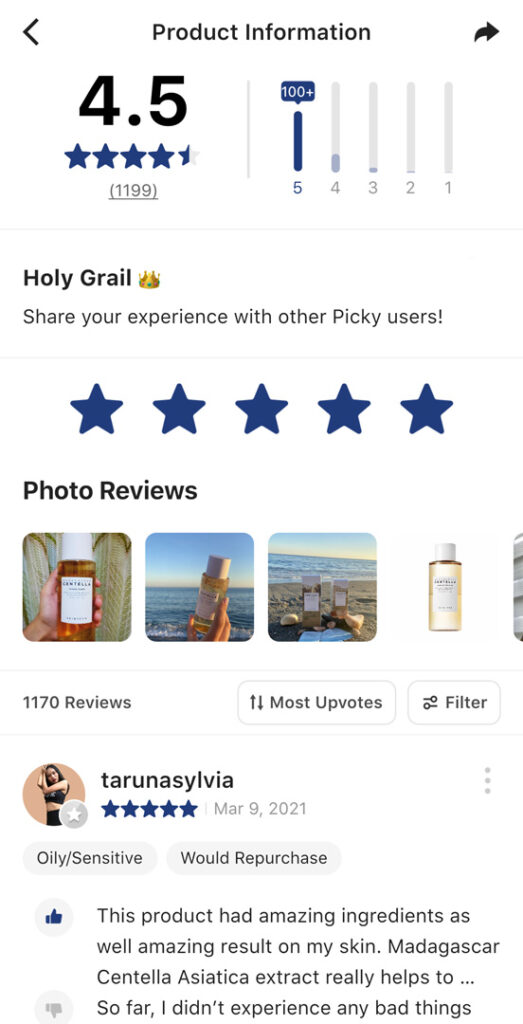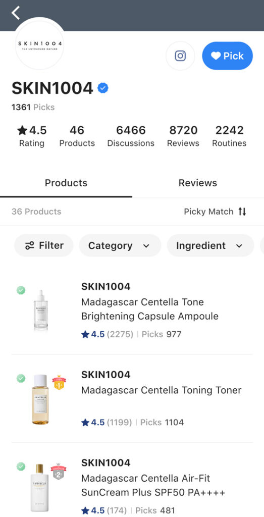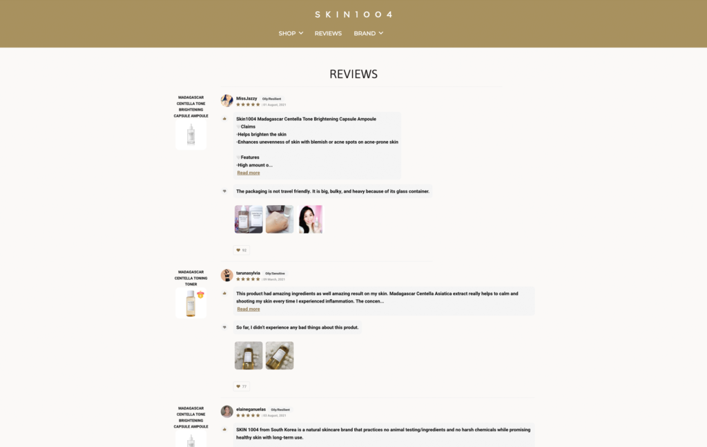The skincare brand SKIN1004 took part in giveaways with us here at Picky on a consistent basis and curated a large selection of amazing reviews from our members. When they launched a new e-commerce website earlier this year, they started out with over 8,000 reviews! They were able to see this translate into sales and long-term consumers right away.